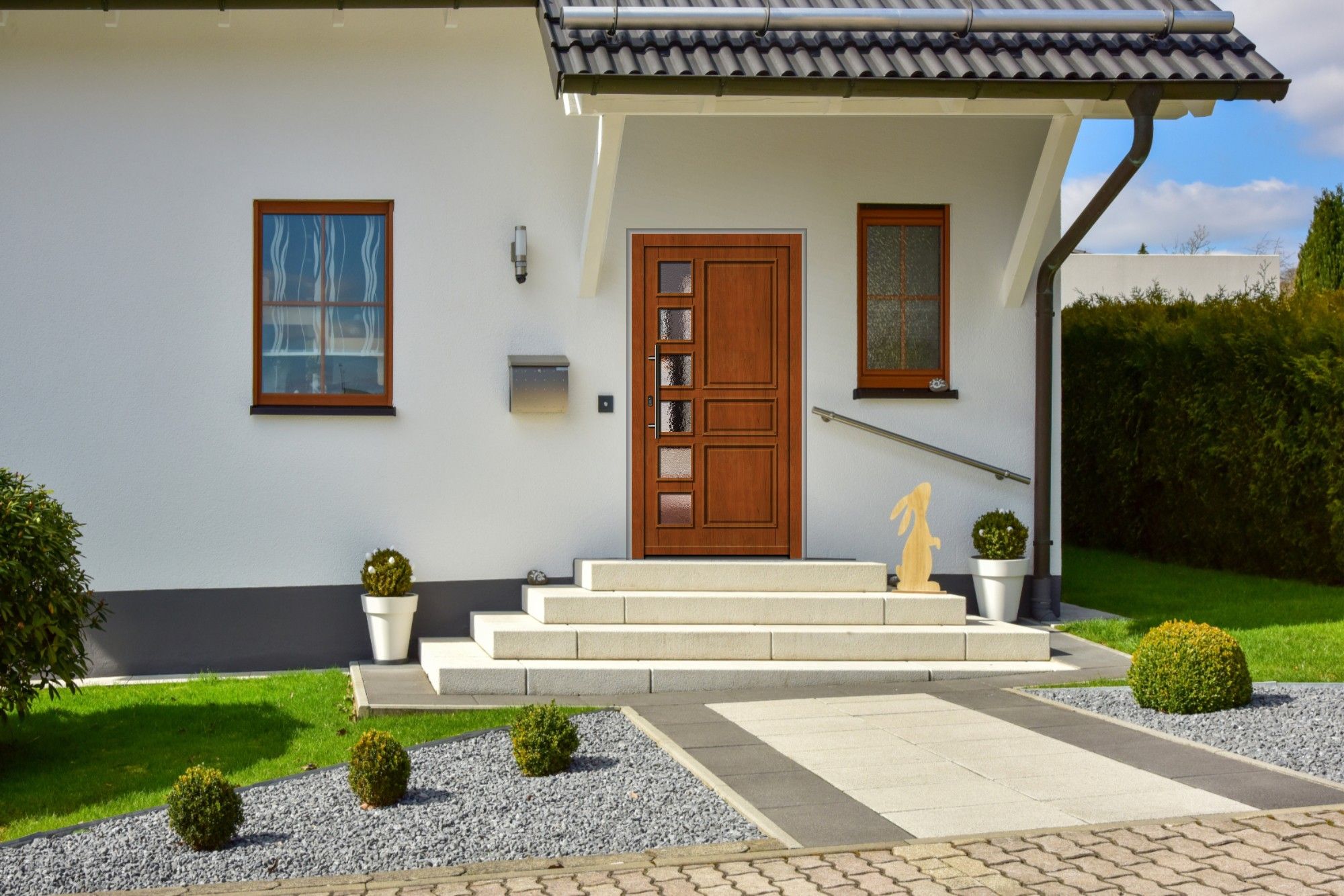 Sie besitzen ein großes Umweltbewusstsein, aber möchten dennoch einen modernen Hauseingang gestalten? Dann ist unsere Holz Haustür "DOREEN" 66 mm das perfekte Modell dafür für Sie. Die Oberfläche dieser hochwertigen Fichtenholzhaustür ist vom Grund auf her imprägniert und kann durch eine Farb- oder Lasurauswahl Verkehrsweiß, Kiefer, Mahagoni, Teak oder Klarlack individuell auf Ihren Geschmack angepasst werden. Nicht nur bei der Oberflächenbeschaffung dürfen Sie Ihren eigenen Charakter einbringen. Bei diesem Modell können Sie eine Fertigung cm-genau auf Maß bestellen. Wählen Sie Ihr passendes Maß aus den Breiten 95 cm - 120 cm und Höhen 180 cm - 220 cm. Zudem kommen verschiedene Ausstattungsvarianten und Verglasungen, die individuell bestimmt werden können, zum Einsatz. Für die modernen Glaseinsätze können Klarglas, Ornamentglas 504 oder Satinato (Milchglas) konfiguriert werden. Bei der Verriegelung setzt die Holz Haustür "DOREEN" 66 mm auf Sicherheit und bietet die Varianten 5-fach Rollzapfenverriegelung oder 3-fach Schwenkhakenverriegelung an. Optional können Sie E-Öffner mit Tagesfalle konfigurieren. So schaffen Sie sich eine Hauseingangstür genau nach Ihren persönlichen Vorlieben!