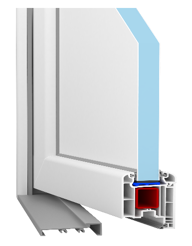 | Aufbau Türrahmen | Mehrkammer-Kunststoff-Profile, Rahmen ist rechts, links und oben mit Stahl verstärkt, Blockzarge |