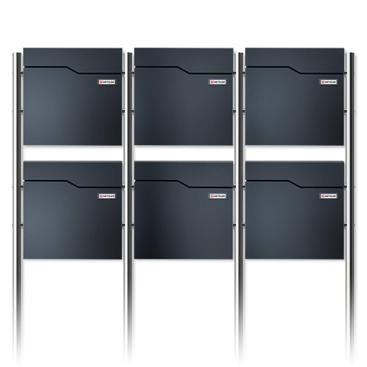 Metzler sechsfach Standbriefkasten "HOFFMANN" Mehrfamilienhaus mit austauschbarem Namensschild